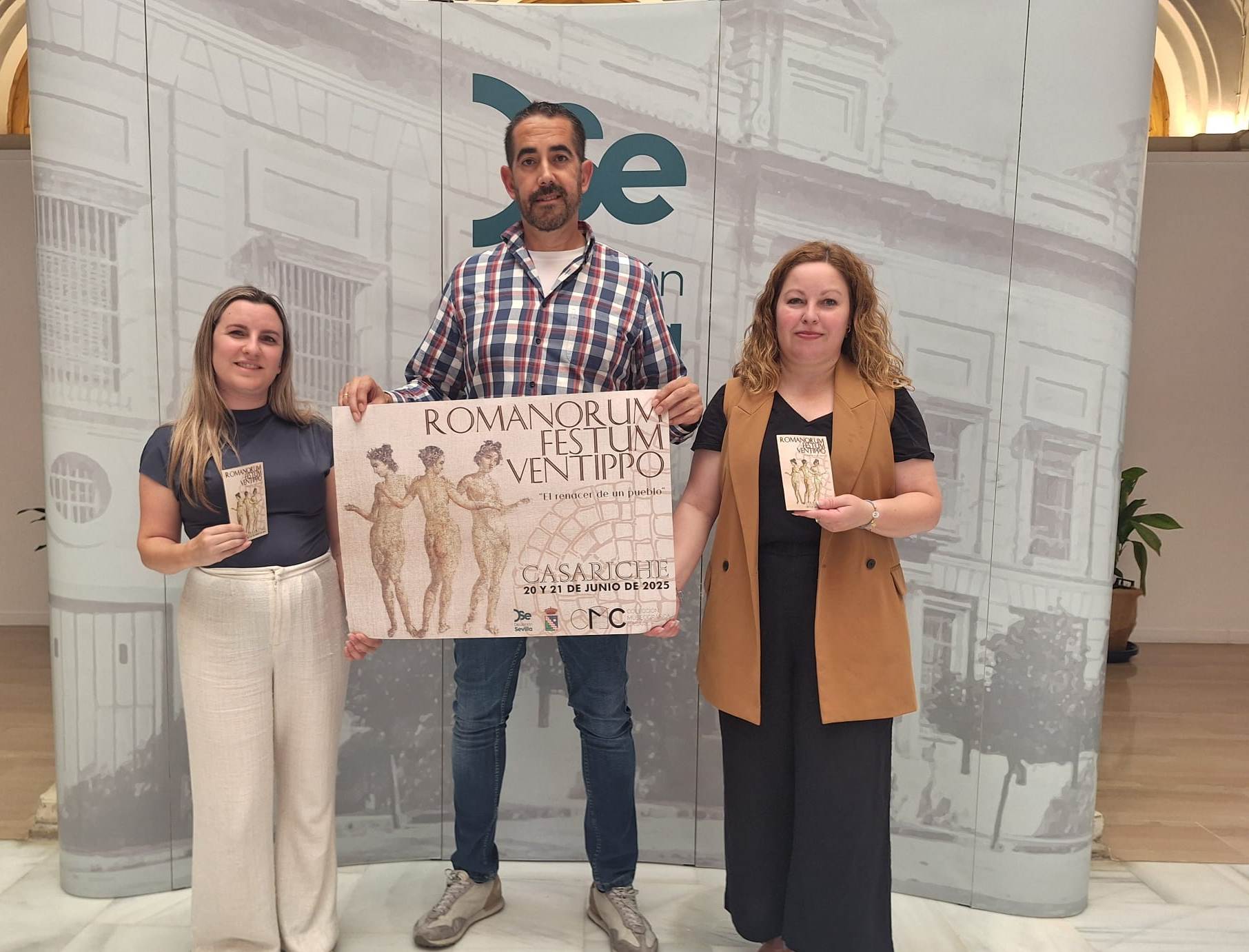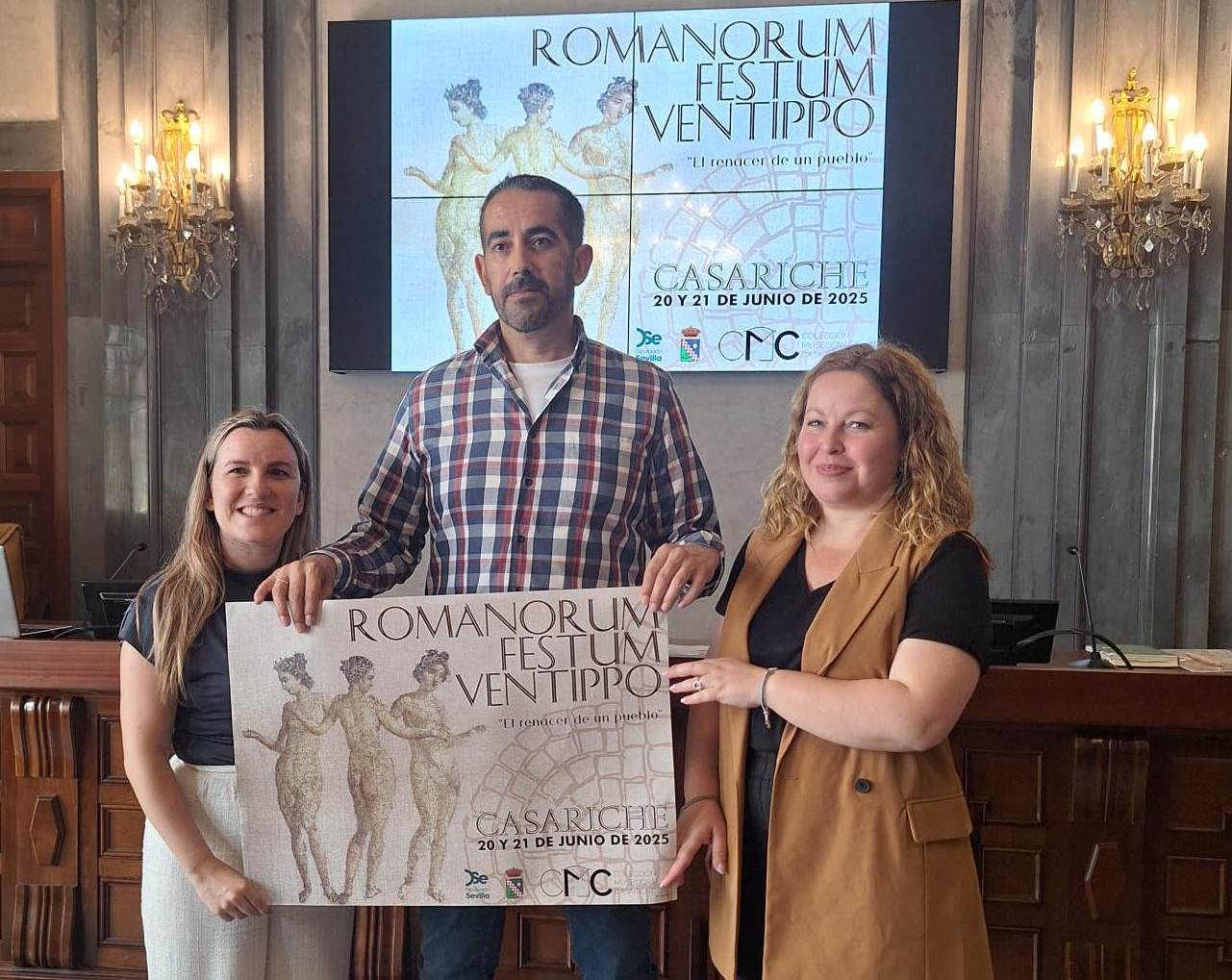 La Casa de la Provincia de Sevilla ha sido hoy el escenario de la presentación oficial del VIII Romanorum Festum Ventippo, que este año lleva por lema «El renacer de un pueblo». La cita, ya imprescindible en el calendario cultural de nuestra localidad, se celebrará los próximos 20 y 21 de junio en Casariche y llega cargada de novedades, entre ellas, un cambio de ubicación: este año se traslada al corazón del municipio, dotando al evento de una dimensión aún más cercana y participativa.